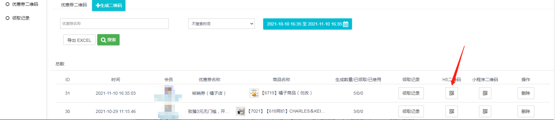 可以生成指定优惠券、指定数量的二维码,前端用户扫描二维码后领取优惠券跳转到指定产品的页面。