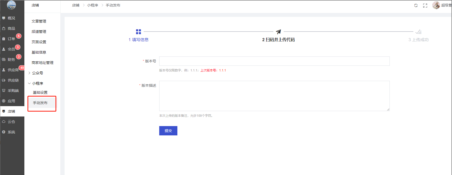 目录 搜索 展开 模王系统准备资料模王系统对接上线操作指南1、服务号的申请流程及认证2、申请小程序流程3、申请开放平台绑定小程序和公众号4、公众号对接后台流程5、小程序对接后台流程6、申请注册微信支付商户号7、支付对接操作指引8、小程序链接库9、腾讯位置服务注册10、申请移动应用11、小程序发布流程12、小程序备案13、小程序变更主体14、更新隐私协议15、关于小程序订单中心页设置的公告16、小程序接入发货管理系统17、小程序年审18.小程序对接企业微信客服19.微信提现(新接口:商家转账)20.短信资质需要准备的资料商城基础功能(系统框架)商城管理-概况商城管理-商品1,发布商品2,商品列表3,商品表单4,商品分类5,品牌管理6,配送模板7,评论管理8,优惠券管理9,商品标签10,退货地址设置11,满额优惠12、批量操作13、配送方式14、基础设置15、商品隐藏商城管理-会员1、全部会员2、会员等级3、会员分组4、资格申请5、会员设置6、推广中心设置7、会员邀请码使用记录8、关系链修改记录9、会员合并记录10、账号注销管理11、会员设置中心商城管理-订单1、订单管理列表2、订单处理流程3、订单状态4、订单修改价格5、订单退款退货(文档说明)6、多包裹发货7、批量发货订单操作步骤8、催发货订单商城管理-财务1、余额设置2、会员余额3、充值记录4、转让记录5、余额明细6、收入明细7、提现设置8、提现统计9、提现记录10、积分管理11、转账审核12、收益广告13、批量充值14、指定支付(余额充值)商城管理-系统1、商城入口2、商城设置①、商城设置②、订单设置③、物流查询④、短信阿里云短信配置腾讯云短信设置⑤、联系方式⑥、分类⑦、优惠券⑧、分享⑨、幻灯片⑩、广告位⑪、资产密码⑫、地图设置⑬、API应用⑭、邮箱配置3、交易设置4、支付方式①:微信支付②、其他支付(余额/他人代付/银行转账/货到付款)5、微信模板消息类目模板库-自定义消息通知 自定义消息模板小程序消息公众号模板消息变更公告6、语言设置7、权限管理8、多媒体管理商城管理-消息商城管理-应用商城管理-统计商城管理-装修DIY1、模板管理2、店铺页面2.1、装修增加跳转视频号2.2、增加抖音装修类型3、顶部导航4、底部导航5、DIY模板市场6、首屏广告7、图片智能设计8、基础设置应用-入口类【小程序】1、小程序基础设置运营规范2、小程序首次授权自动绑定手机号【公众号】1、自定义菜单-公众号底部导航2、自动回复3、素材管理4、粉丝管理【PC前端模板】1、基础设置2、广告管理-PC端模板1设置3、首页商品设置4、前端页面5、登录方式6、PC端模板2【子平台】【更换域名后公众号、小程序、商城等需要调整的内容】【一种万能的获取商城小程序路径的方法】【小程序客服】应用-行业类AI看舌付费内容付费文档【酒店】1、酒店基础设置2、酒店幻灯片3、酒店分类4、酒店入驻和管理5、酒店独立后台和商品6、酒店前端【门店-收银台】1、门店申请和使用步骤1.1 门店申请资料同步汇付进件2、门店管理①、门店-收银台 营销设置②、门店-收银台 分润设置3、门店分类4、门店申请5、门店审核6、门店商品7、门店商品订单8、收银台订单9、提成明细10、数据统计11、核销员12、基础设置收银台买单增加语音播报功能(会员推送)13、默认设置14、连锁店老板15、门店独立后台操作16、地图设置17、门店广告18、门店增加门店自提点功能19、门店、收银台分销 区域分红 招商分红计算示例20、门店股东21、门店余额1、门店余额插件2、门店-收银台插件-门店余额设置3、门店独立后台4、前端展示22、门店配送规则23、会员爱心值给到店主24.常见问题处理【供应商】1、供应商申请2、后台供应商插件3、供应商基础设置4、供应商前端页面显示5、供应商保单功能-可供保险行业提交保单信息使用6、供应商关联自提点【自提点】1、自提点操作说明2、自提点社区团购管理2.1 装修DIY插件增加社区团购组件3、自提点海报、自提点锁定期4、自提点消息通知5、自提点提成明细【商城自提】【上门安装】【视频点播】腾讯云上传视频流程1、【视频点播】基础设置2、幻灯片/导航管理3、添加讲师/在商品添加课程视频4、课程聚合页5、会员如何购买课件、打赏讲师6、会员如何升级等级免费观看课件7、讲师提现设置8、看课记录9、订单管理【安装服务】【活动报名】1.功能简介说明2.活动分类3.报名活动4.付费订单5.幻灯片6.基础设置7.前端活动报名操作流程【租赁】【同城配送】【店铺助手】【微社区】1、微社区基础设置2、微社区帖子分类管理3、微社区会员如何发帖4、微社区帖子管理5、微社区帖子打赏记录6、微社区帖子敏感词管理7、微社区增加心愿功能【代客下单】【支付宝配置】【分时预约】【拍卖商品】1、基础设置2、轮播图3、拍卖官列表4、拍品列表4、订单管理5、保证金记录6、拍卖记录7、拍卖官收入8、出价奖励记录9、代言费10、保证金黑名单11、禁拍名单12、拍卖前端【圈子社区】【AI智能测肤】【随叫随到服务】扫码买单【虚拟卡密】【厂家管理】【会务活动】1.会务活动管理2会务活动基础设置3.前端会务活动如何进行报名顾客档案应用-供应链类【聚合供应链】1、聚合供应链入驻流程2、聚合供应链常见问题3、聚合供应链售后解答4、