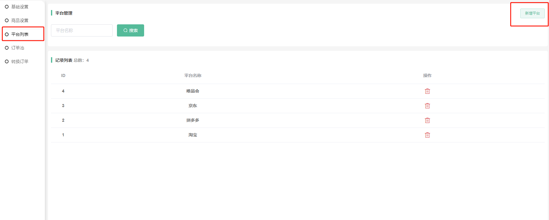 平台列表-可添加不同平台