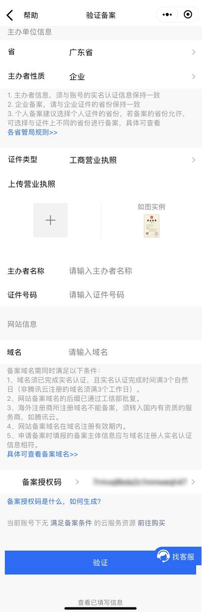 • 选择云服务器、轻量应用服务器、Serverless、云托管备案或者填写备案授权码。