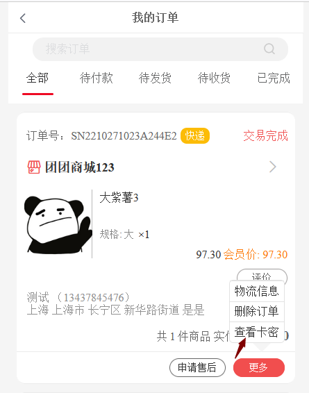 订单已完成状态-右下角点击更多--查看卡密按钮-进入虚拟卡密界面,可以直接复制卡密(至于卡密如何使用,主要看客户用于在哪方面)