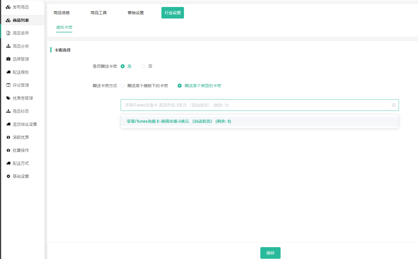 三 、 商品列表需要--编辑商品-虚拟卡密,购买这件商品是否赠送卡密